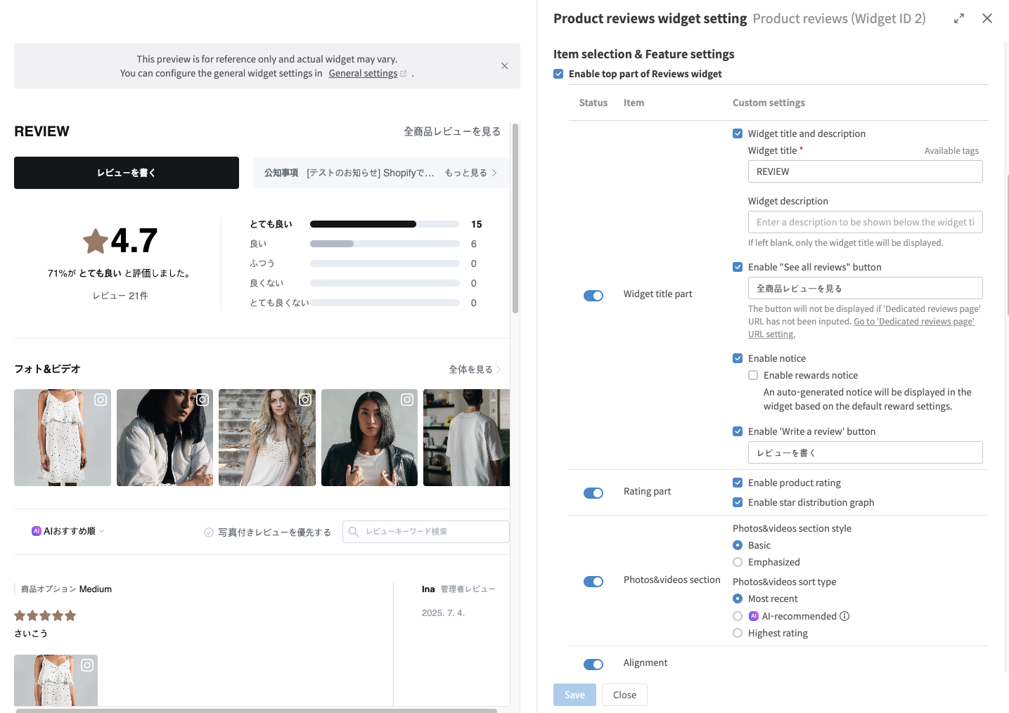 - From Widget settings, click Setting of the widget that you want to customize :