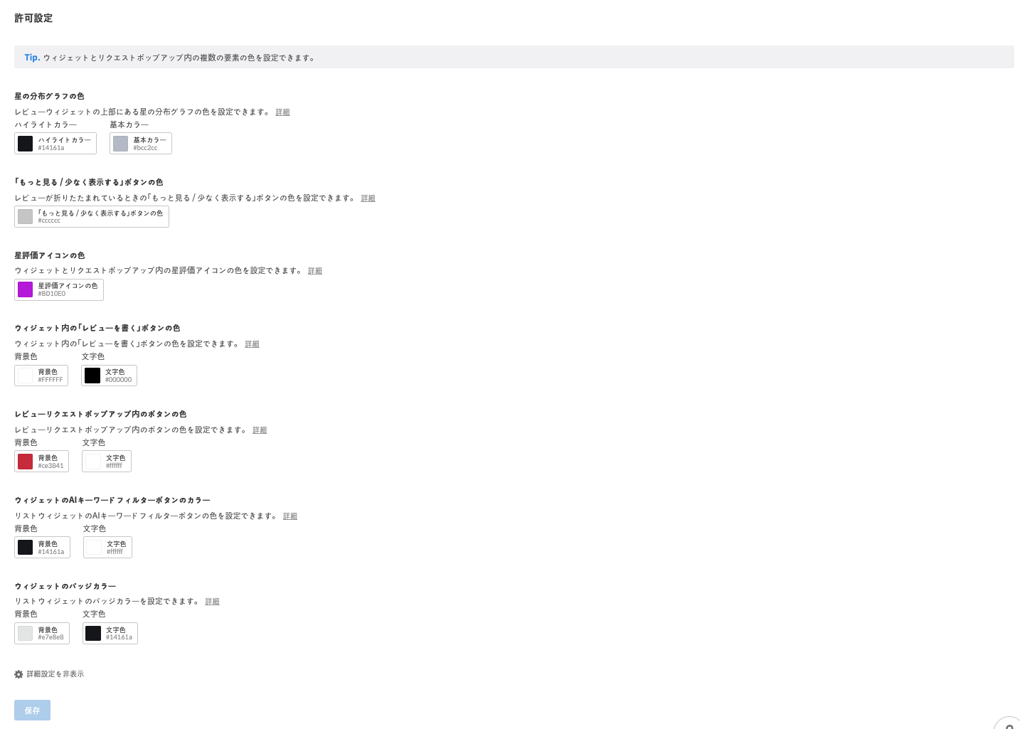 この設定は、レビューウィジェットおよびディスプレイウィジェットに適用されます。