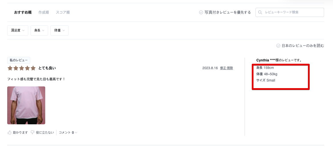 例えば、年齢、身長、肌質など、同じ特徴や目的を持つ顧客のレビューに注目できるため、より関連性の高い情報を得ることができます。