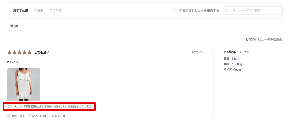この機能を使うことで、スタッフ自身が商品レビューを作成でき、さまざまな商品情報を伝えたり、高品質なレビューを表示したりできます。