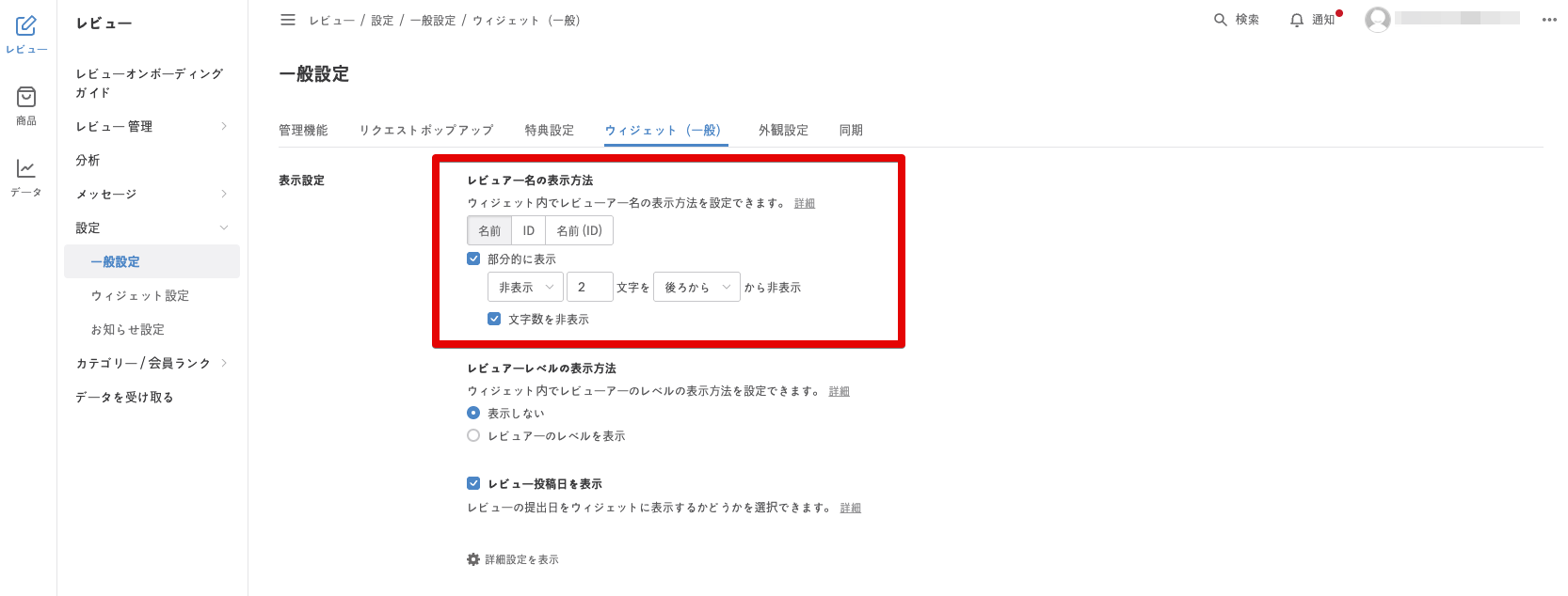 - レビュアー名の表示方法 メニューから、希望の表示方法を選択します。