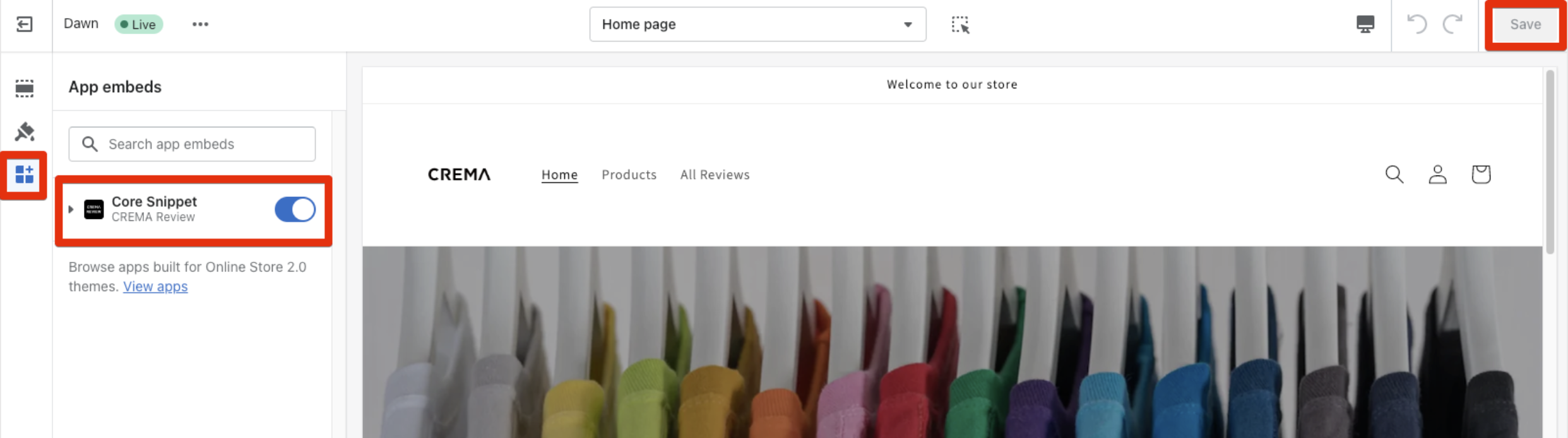 CREMA Reviewのコアスニペットを有効にする