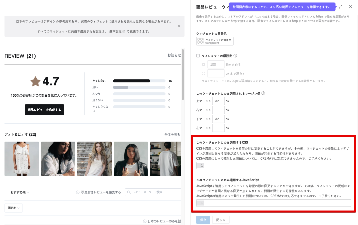 CSS・JavaScript を使用した高度なウィジェットカスタマイズ