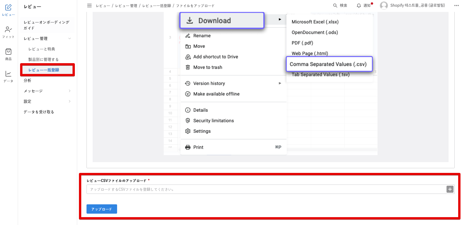 CREMAテンプレートを使ったレビューのインポート